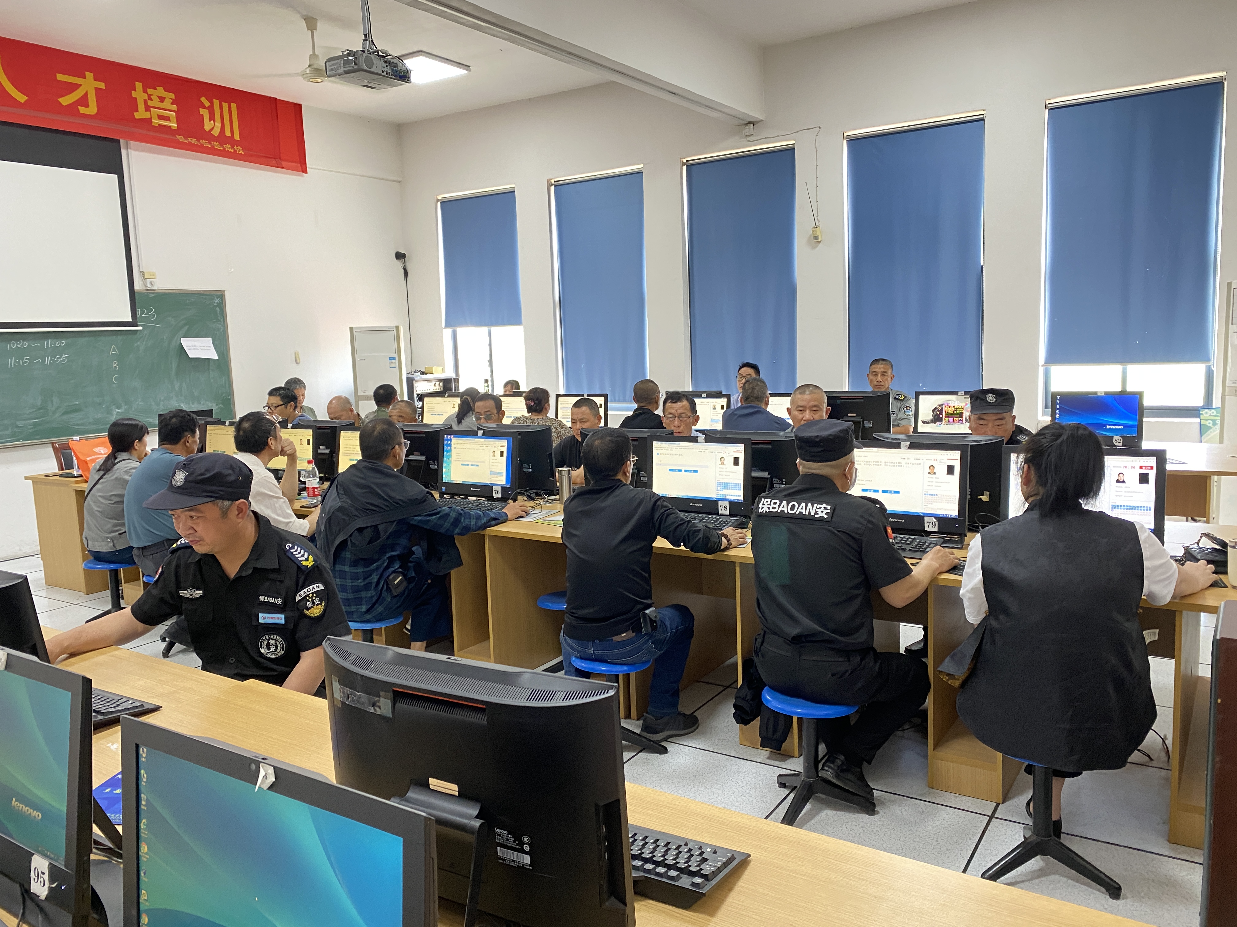 為進一步加強和規范保安管理工作,提升保安隊伍綜合素質和應急能力,全面落實保安員從業準入、持證上崗制度,推進保安隊伍職業化、正規化建設,5月4日上午,安吉縣社區教育學院遞鋪分院聯合安吉新邦保安公司在遞鋪分院機房組織開展保安員從業資格考試,全縣各機關、團體、企業、事業單位及服務企業等單位共53名保安員參加保安員從業資格考試。
