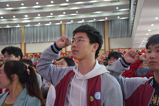 在李鵬鵬同學的帶領下,全體學生莊嚴宣誓。徐晉謙校長為各班授戰旗。誓言錚錚,戰旗獵獵,同學們接過的不僅是一份信任和重托,更是一份責任和擔當!