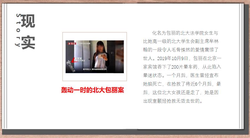 當(dāng)理想照進(jìn)現(xiàn)實(shí),美好的愛情故事背后,卻可能有著殘酷的真相。接著,黃老師為大家講述了轟動(dòng)一時(shí)的“北大包麗”案,以大量的新聞圖片、聊天記錄向同學(xué)們展示了包麗被精神“謀殺”的全過程,用包麗服藥自殺、牟林翰服刑告終的結(jié)果向所有同學(xué)表示:“北大包麗案件”不過是社會(huì)萬象中的一例,但作為一個(gè)沉痛的悲劇,它代表的是眾多青年男女對(duì)感情的錯(cuò)誤認(rèn)識(shí)、理解,對(duì)三觀的誤解。對(duì)于任何一個(gè)人而言,愛一個(gè)人的前提自愛、自重和自信。作為現(xiàn)代青年,可以選擇愛,也可以選擇拒絕,希望同學(xué)們要懂得自愛、學(xué)會(huì)求助、學(xué)會(huì)理性看待感情。