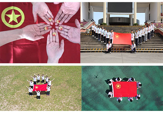 團員青年與團旗合影,團員們紛紛亮出身份,在團旗的映襯下,同學們顯得尤其朝氣蓬勃,展現出新時代青年風采。
