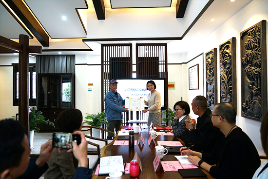 隨后,在參會(huì)人員共同見證下,范曉春和韓鳴華共同為工作坊揭牌,代表著文化傳承的載體真正建立。