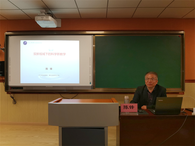 杭州市錢塘區(qū)教師教育學院院長、浙江省特級教師陳鋒作《雙新視域下的科學新教學》的專題講座。陳院長以2022版新課程方案為切入點,圍繞新課標釋放了哪些關鍵信息、如何用新課標來指導“舊教材”的教學等方面,給老師們指明了如何盡快體現新課程理念和實現新教學之路。