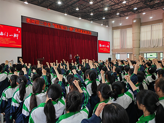 在距離高考30天的備考關(guān)鍵時(shí)刻,為幫助高三考生緩解考前壓力,做好心理調(diào)適,以最佳狀態(tài)備戰(zhàn)高考。5月5日下午,衢州第二中等專業(yè)學(xué)校邀請(qǐng)全國(guó)著名中、高考勵(lì)志教育專家、積極心理學(xué)和正向教育推廣人、《中國(guó)教師報(bào)》全國(guó)教師培訓(xùn)基地專家團(tuán)專家、汕頭大學(xué)特聘講師、杭州銘師堂教育特約金牌講師、北大邦教育集團(tuán)聯(lián)合創(chuàng)始人徐躍斌老師來(lái)校舉行了一場(chǎng)以“踢好臨門(mén)一腳”為主題的勵(lì)志講座,全體高三學(xué)子、班主任、任課教師齊聚一堂,共同聆聽(tīng)徐老師的暢談,并肩吹起沖鋒的號(hào)角。