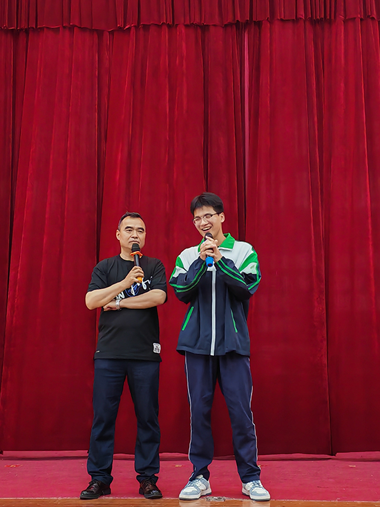 隨后,徐躍斌老師邀請(qǐng)高三班主任上臺(tái),讓每位班主任對(duì)同學(xué)們說(shuō)一句加油鼓勵(lì)的話語(yǔ),并號(hào)召全體高三學(xué)生懷揣感恩之心,向平日里辛勤付出的老師大聲喊出:“老師,您辛苦了!您是我生命中的貴人,我永遠(yuǎn)感激您!老師,請(qǐng)您放心,最后30天,我決不放棄!老師,請(qǐng)您督促我,幫助我!老師,我絕不放棄自己!老師,您辛苦了!我們感謝您!”接著,徐老師請(qǐng)班主任們走向同學(xué)們,擊掌助力,一時(shí)間師生之間情意融融,彌漫了整個(gè)活動(dòng)現(xiàn)場(chǎng)。