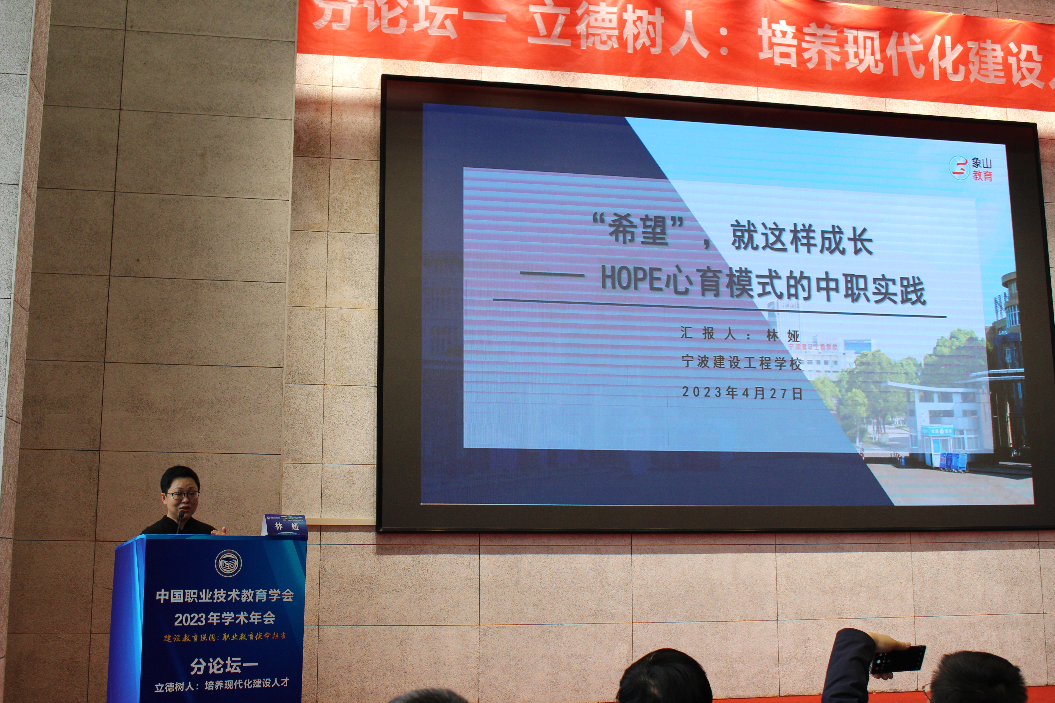 4月27日,主題為“建設教育強國:職業教育使命擔當”的中國職業技術教育學會2023年學術年會在京召開。作為年會分論壇之一的“立德樹人:培養現代化建設人才”論壇以線上線下相結合方式進行。寧波建設工程學校“HOPE心育模式的中職實踐”經驗成果在年會“立德樹人”分論壇分享。