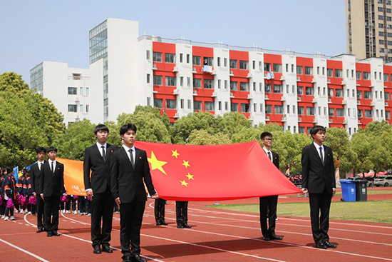 在莊嚴的國歌聲中,國旗緩緩升起,副校長朱曉慧為本次田徑運動會致開幕辭,她首先代表學校,向籌備和參與本屆運動會的全體成員表示衷心的感謝,并號召全體學生以團結、奮進、拼搏的精神面貌迎接運動會,與“亞運”共精彩,“藝”起向未來。