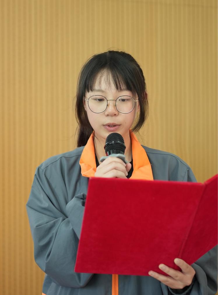 來自2004班的陳裳同學代表入團積極分子發言。她認真學習黨的二十大報告中習近平總書記對青年的寄語:“青年強,則國家強。” 并認真研讀梁啟超先生的《少年中國說》和李大釗先生的佳作《青春中華》,她引用文章中一句話與學員共勉:青年之文明,奮斗之文明也,與境遇奮斗,與時代奮斗,與經驗奮斗。堅定地表達了自己入團理想和決心。同時也希望學員們在培訓中不斷深化認識,端正思想,努力帶動身邊的青年一起進步,爭取早日入團。
