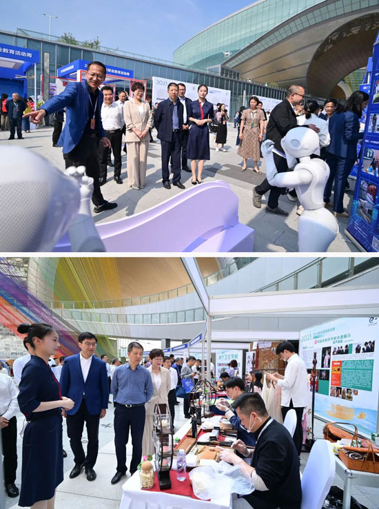 ▲浙江省教育廳黨組成員、副廳長于永明一行蒞臨嘉興技師學院職業(yè)體驗展位和非遺特色展位