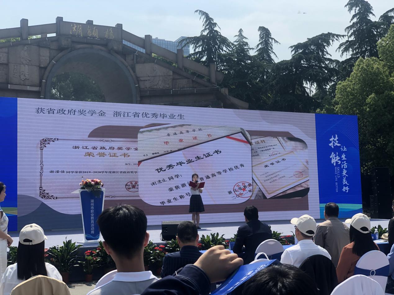 此外,浙江省湖州藝術與設計學校國家獎學金獲得者代表施嘉諾、敬丹上臺領獎。