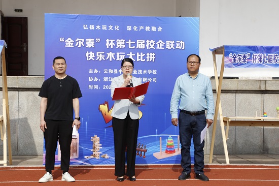 5月16日,浙江金爾泰玩具有限公司總經理游小衛、云和職技校副校長王柳娟、校產學研中心主任藍新章出席活動開幕式,開幕式由產學研中心副主任雷靜主持。