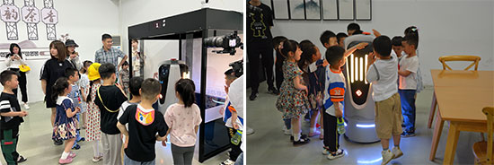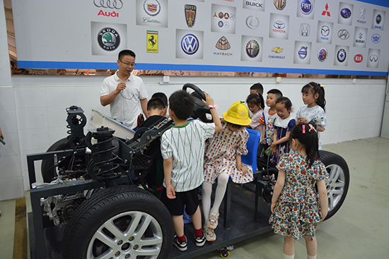 孩子們和家長們在學校實訓處副主任陳佳嬡和學校園藝專業教師周偉仙的帶領下,從夢想廣場出發,來到智慧大棚和勞動基地,與大自然親密接觸,體驗傳統農業技術、現代工程技術、現代信息技術綜合運用結合在一起的“智慧農業栽培系統”,感受現代農業的魅力。在學校實訓基地,一排“專業融清”的平面設計作品映入大家眼簾,“清廉IP”規規矩矩在和小朋友打招呼,在孩子的心中種下一顆“廉潔”的種子。在汽修職業體驗中心,孩子們被汽車模型深深吸引,“這就是汽車肚子里的秘密嗎?”“汽車是喝汽油的,汽油裝在哪里呀?”“什么是新能源汽車?”張科鋒老師為孩子們一一解答,“汽車創意夢”由此啟動。剛走進物聯網職業體驗中心,可愛的服務機器人就向孩子們打招呼了。在朱鑫浩老師的引導下,一起了解“萬物互聯”的神奇世界。