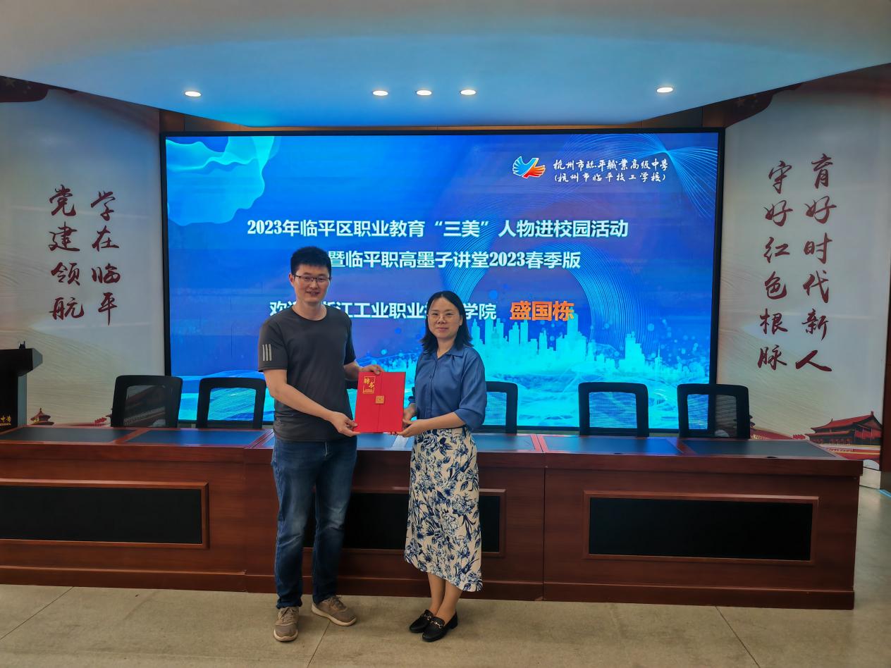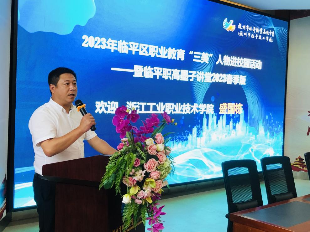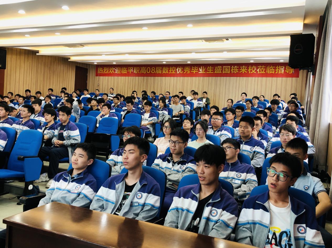 根據(jù)臨平區(qū)關(guān)于《做好2023年職業(yè)教育活動(dòng)周相關(guān)工作》的通知中,開展“三美”人物進(jìn)校園巡講活動(dòng)。臨平職業(yè)高級(jí)中學(xué)秉承弘揚(yáng)匠人精神、堅(jiān)守匠心品質(zhì)的理念,認(rèn)真組織開展職業(yè)教育“三美”(勞動(dòng)模范、成長(zhǎng)導(dǎo)師、優(yōu)秀畢業(yè)生)人物進(jìn)校園活動(dòng)。2023年5月17日,臨平職業(yè)高級(jí)中學(xué)特邀08級(jí)數(shù)控專業(yè)優(yōu)秀畢業(yè)生——盛國(guó)棟來(lái)校開設(shè)講座,21級(jí)、22級(jí)數(shù)控部的學(xué)生參加此次講座,由實(shí)訓(xùn)處副主任周晨主持。