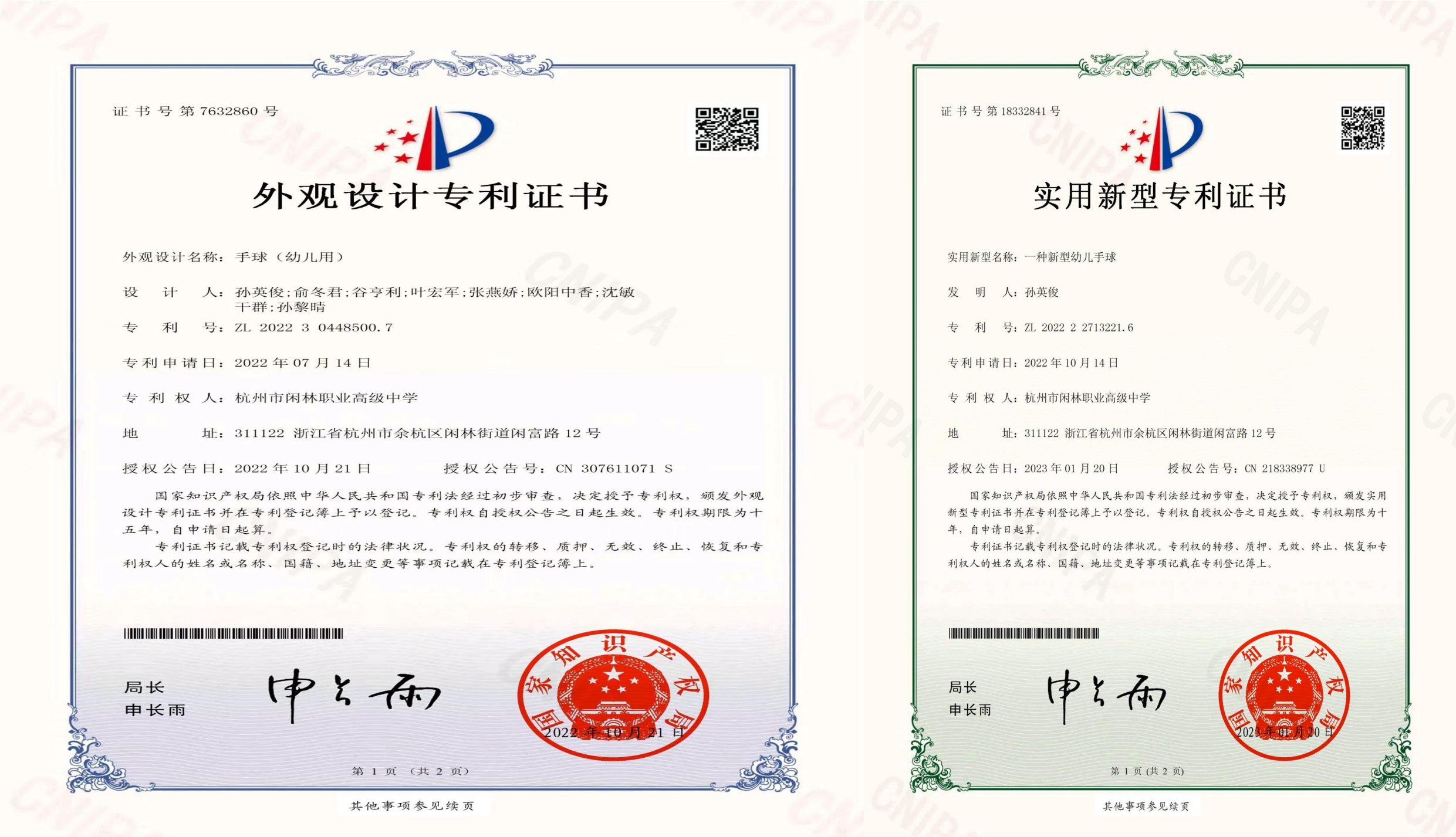 2019年至今,手球不僅是學校體育特色與品牌項目,也是“五藝+素養課程”的重要內容,聚焦了中職生核心素養的發展。發展至今,國家級媒體《中國教育報》《華夏教育》,以及《浙江職成教網》《浙江教育信息網》等省級媒體先后予以報道,培育了1名手球國家一級運動員、5名手球國家二級運動員、1名奧運手球教練員(幼兒)、1名中國手球協會D 級教練員、5名手球國家二級教練員、30余名手球國家三級手球裁判員。在以手球為載體的體育教學課程改革中,先后出版專著2本,申報國家外觀專利1項、實用新型專利1項。