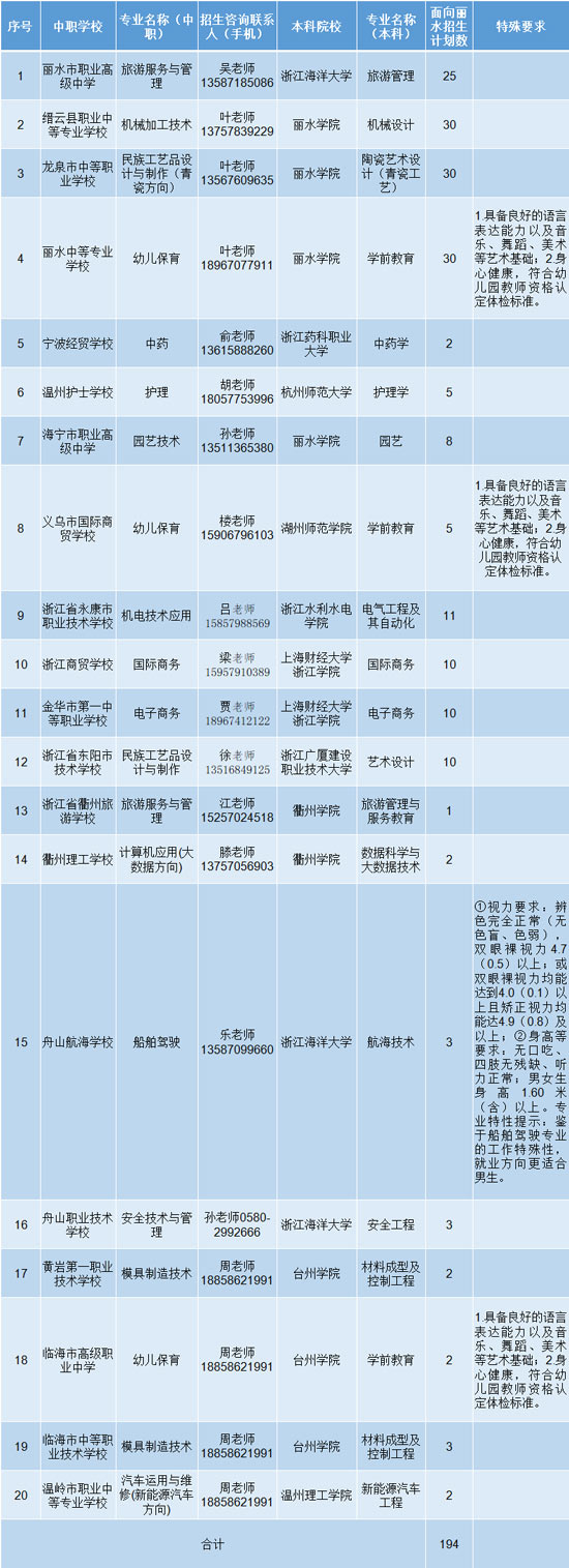 答:今年中本一體化人才培養(yǎng)面向麗水市招生194人,相較2022年增加了89個名額!今年共20所試點(diǎn)學(xué)校面向我市初中畢業(yè)生招生,相較2022年增加了13所!招生計劃奉上!快拿出小本本列出你心中的理想學(xué)校!