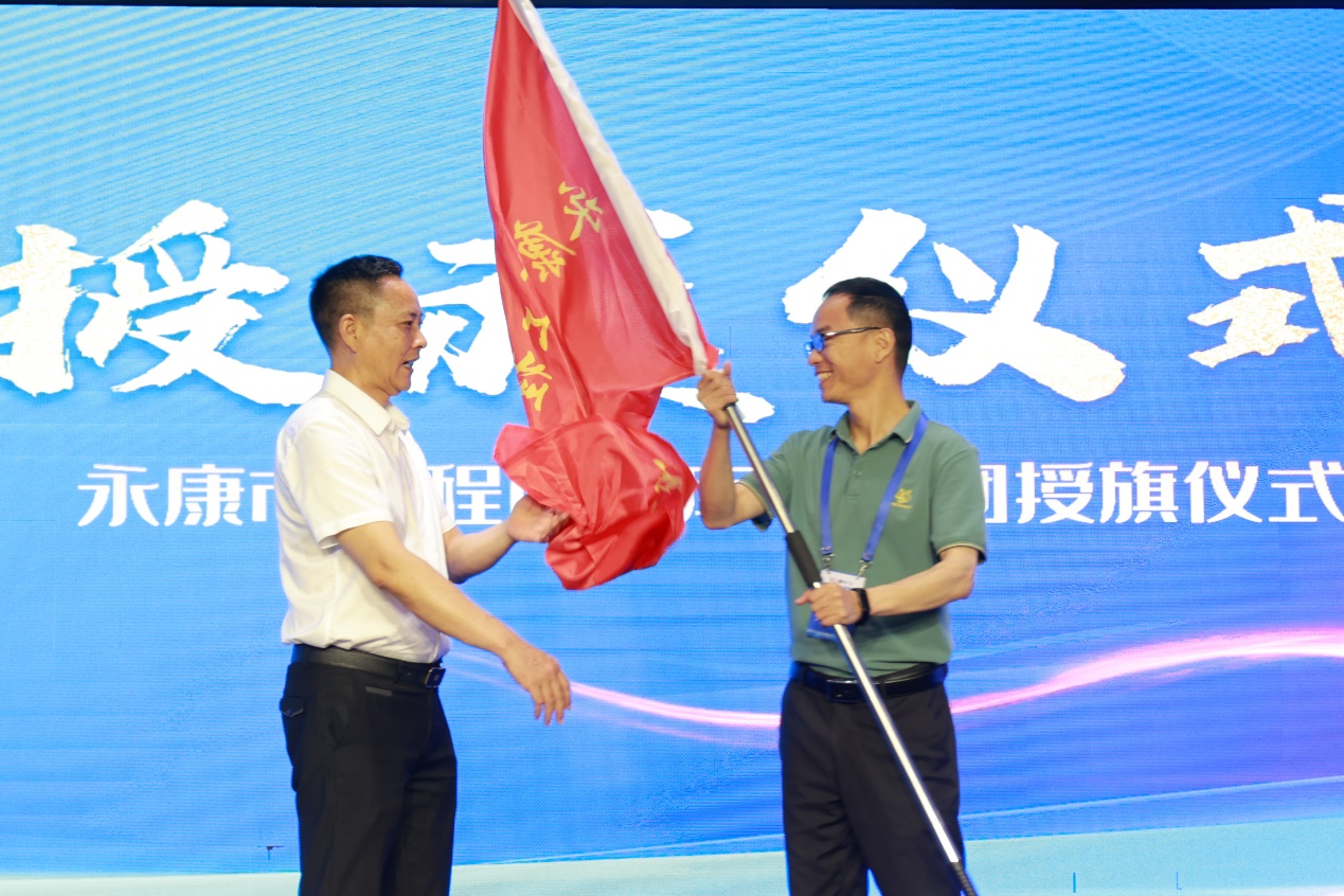 在熱烈的掌聲中,永康五金技師學(xué)院博士后工作站負(fù)責(zé)人、智庫服務(wù)團(tuán)團(tuán)長胡天喜博士從永康市人社局黨組書記、局長曹法余手中接過旗幟,宣布正式成立“永康市工程師智庫服務(wù)團(tuán)”。