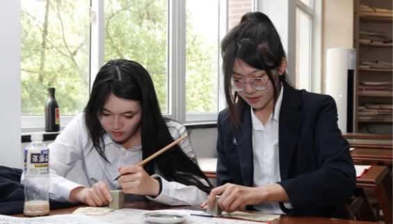 為更好地體驗學校文化,下午,澳門創新中學的師生們實地參觀了校園環境及各實訓場所,分組體驗了陶藝、民樂、篆刻等社團活動和亞運主題活動。