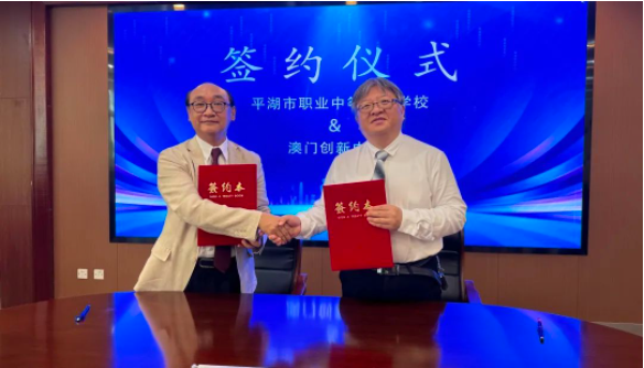 2021年10月,平湖職中倪國鋒老師在浙江省教育廳的委派下,赴澳門交流協作。為推助平澳兩地在職業技術教育范疇的交流與合作,促進兩地在教學、行政管理、人員交流等領域的發展,在倪老師的牽線搭橋下,自2022年3月10日起,學校與澳門創新中學締結為友好姐妹學校,共同建立教育合作關系。