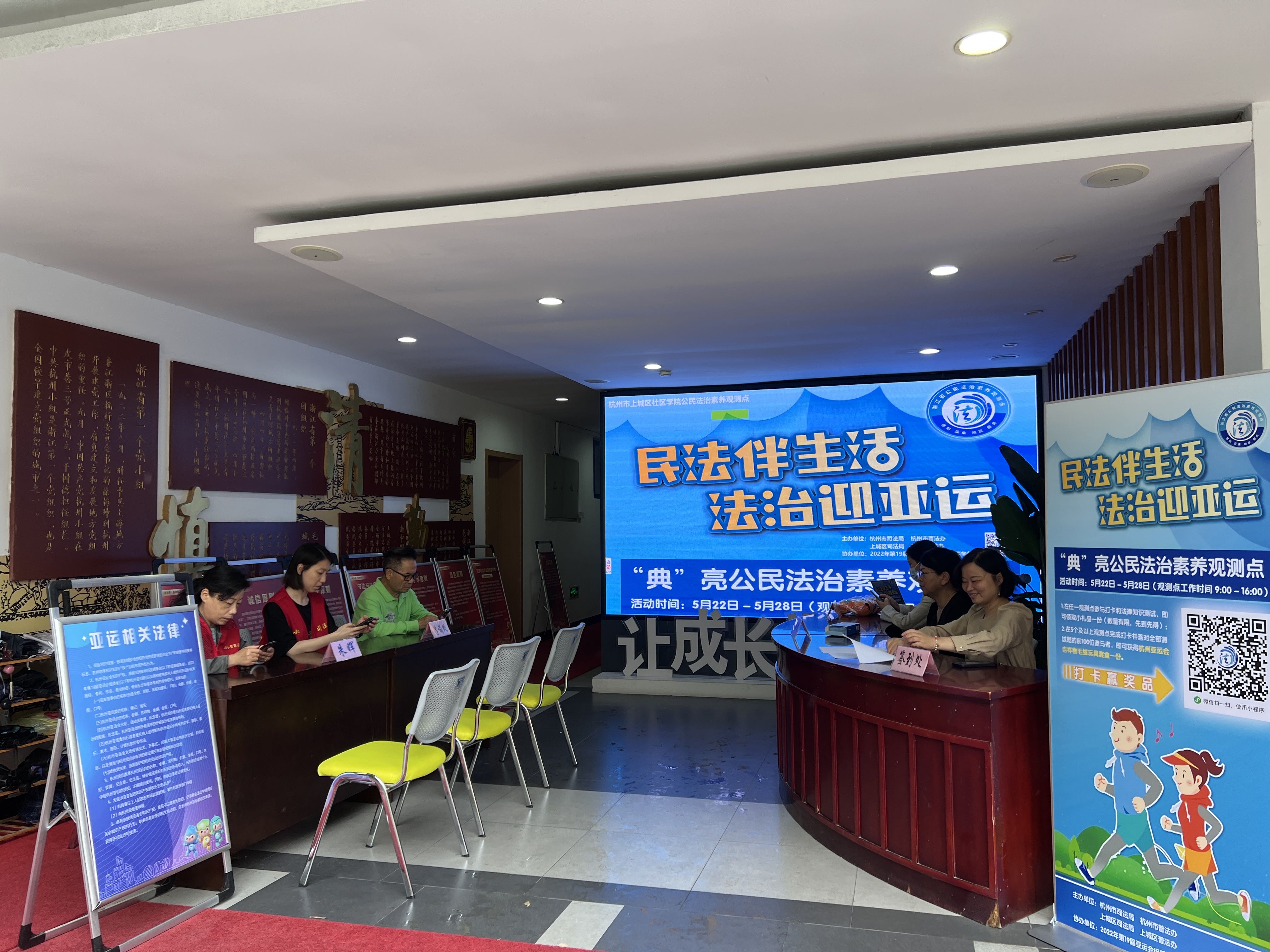 為進(jìn)一步增強(qiáng)群眾的法律意識(shí),助力亞運(yùn)順利開(kāi)展,5月22日起,由杭州市司法局、普法辦,上城區(qū)司法局、普法辦,浙江省禁毒委員會(huì)主辦,上城區(qū)社區(qū)學(xué)院作為公民法治觀察點(diǎn),與小營(yíng)街道司法所共同承辦了為期一周的“民法伴生活 法制迎亞運(yùn)”活動(dòng)。