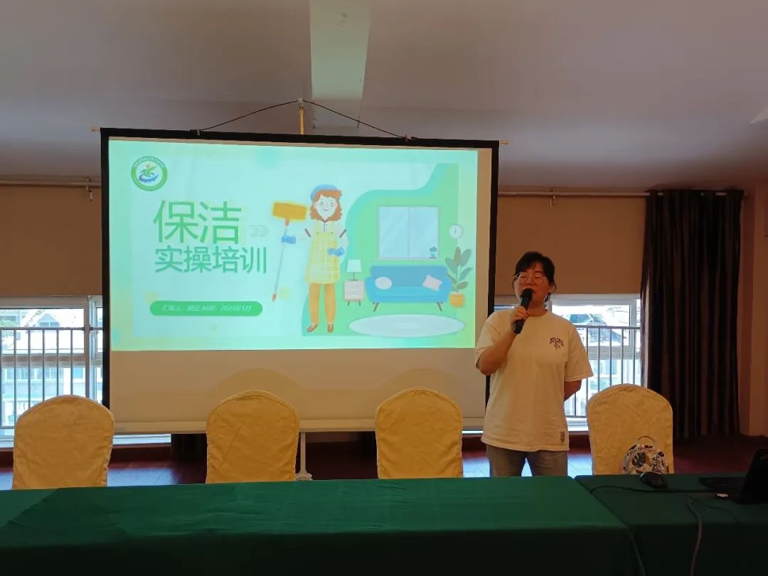 培訓班邀請遂昌縣職業中專酒店服務專業的周云老師為學員們進行保潔服務職業道德教育和專業知識講解,并現場實操,模擬保潔工作的各個環節。