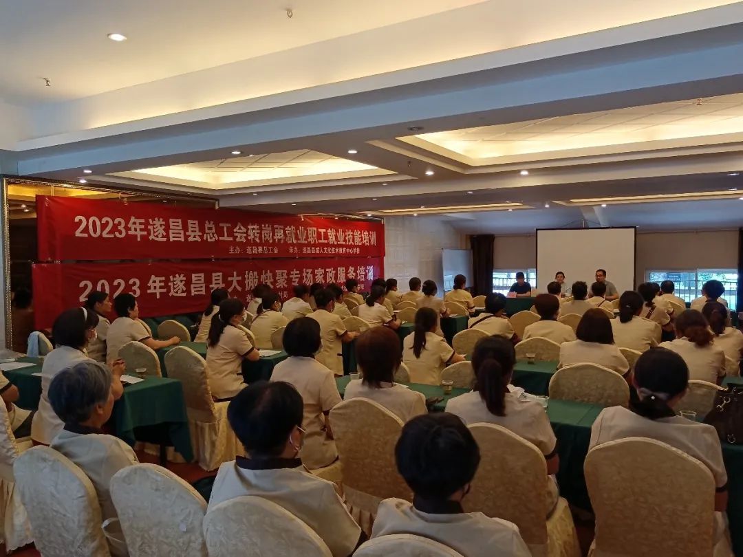 5月28日,遂昌縣大搬快聚專場家政服務培訓暨遂昌縣轉崗再就業職工就業技能培訓開班。