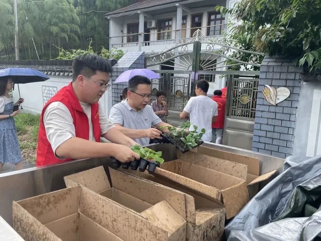 為進一步發展庭院經濟,幫助生活困難家庭拓寬增收渠道,依托村民自家庭院土地優勢,5月29日,湖州市現代農業技術學校教師陳小凡、王杰帶領學生志愿者,為妙西鎮石山村村民發放蔬菜苗,并現場指導村民栽種技術。
