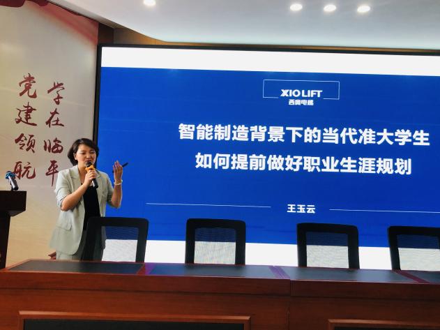 王玉云老師從職業規劃的內涵,規劃職業生涯的原因,當前社會制造業現況,西奧電梯優秀工匠事例等多方面,為同學們剖析職業規劃的重要性。
