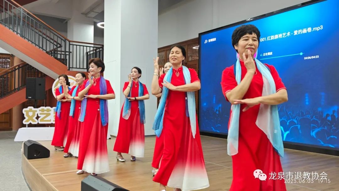 18時(shí)30分,文藝晚會(huì)正式開始,首先登場的是由旗袍隊(duì)隊(duì)長周建麗、學(xué)員葉巖香等7人帶來的絲巾舞《愛的畫卷》,嫻熟的動(dòng)作、優(yōu)美的舞姿,讓人眼前一亮;季真老師的獨(dú)唱《九兒》,以情帶聲、聲情并茂;季章水校長、陳杏芳夫婦的二胡演奏及演唱的《舊夢》,琴聲合一,余味悠長;柳仁芝等6人表演的非洲鼓《一朵情花開》,鼓聲悠揚(yáng)、節(jié)奏明快、動(dòng)作整齊、悅耳動(dòng)聽;許仲嵐表演的電吹管《畫你》,音色美妙動(dòng)聽;周建麗、潘霞芝演唱的越劇《十八相送》,表演動(dòng)作優(yōu)美,唱腔悅耳動(dòng)聽、讓人如癡如醉;鐘石玄金班長的男聲獨(dú)唱《最美江南水》,聲音宏亮、飽含深情、灑脫自如、令人陶醉;許仲嵐的《葫蘆絲》獨(dú)奏,音色婉轉(zhuǎn)、柔美、細(xì)膩、動(dòng)聽;吳素芬、郭叢秀演唱的《龍船調(diào)》,不僅腔調(diào)高亢婉轉(zhuǎn)、感染力強(qiáng)、表演動(dòng)作也非常優(yōu)美;最后,梅顯招帶領(lǐng)學(xué)員們齊唱《中國,中國,鮮紅的太陽永不落》《歌唱祖國》,把晚會(huì)推向了高潮。學(xué)員們的精彩表演贏得了在場觀眾的陣陣掌聲。