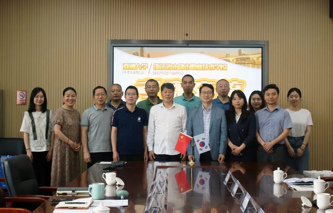 6月1日,在AICC國際教育中心吳麗芳董事長陪同下,韓國亞洲大學院長李東烈、留學生入學處處長崔庭鈴和軟件工程系教授山高陽赴永康市職業技術學校訪問交流。永康市教育局副局長施曉紅,永康職技校校長、永康五金技師學院常務副院長王鐘寶,永康五金技師學院副院長吳勇,永康職技校黨委書記夏其明、副校長胡贊等出席座談交流。山高陽教授和吳彬老師擔任翻譯。