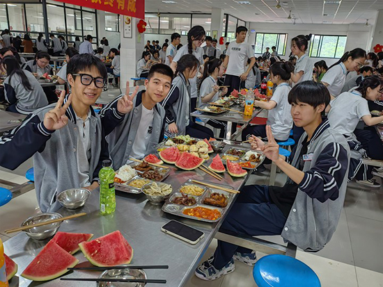 學校為全體高三師生準備豐盛佳肴,贈送吉祥寓意,助力高考。
