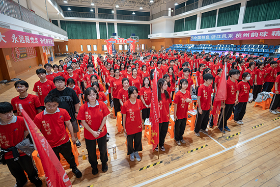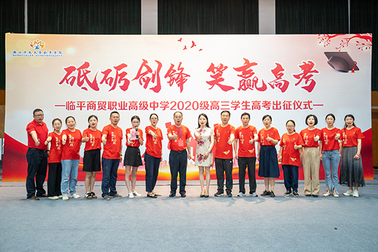 寒窗磨劍,今朝試鋒!2023年高考如期而至。為鼓舞高三學子士氣,助威壯行,6月7日早上,杭州市臨平商貿職業高級中學于藝荷樓舉行高考出征儀式。學院院長朱慧明,副院長查文婷、教務處主任郭江河以及高三全體班主任、任課教師參加此次出征儀式。高三年級主任章鶯主持儀式。