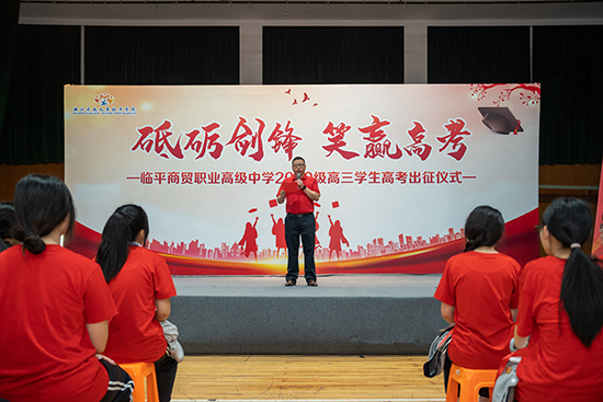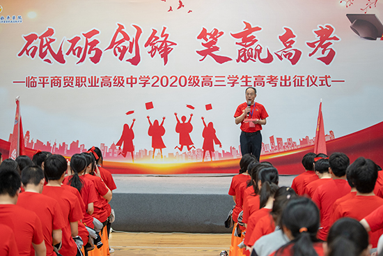 儀式最后,朱慧明院長致出征詞:希望全體出征師生不忘初心,堅定信念,穩定心態,保持自信,以昂揚的姿態,飽滿的信心,勇敢迎戰,圓夢六月,在2023年的高職考中繼續創造商貿職高的新輝煌!