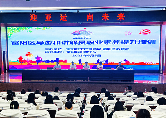 為進一步加強富陽區導游(講解員)隊伍的建設,不斷提高專業素質和講解水平,更好地樹立導游(講解員)隊伍良好的行業形象,并為2023年杭州亞運會儲備一支知識全、業務精、能力強的導游(講解員)人才隊伍。富陽區文化和廣電旅游體育局、富陽區教育局于5月31日和6月5日舉辦“迎亞運·向未來”富陽區導游和講解員職業素養提升培訓班,富陽區職業教育中心(富陽區富春成校)承辦。