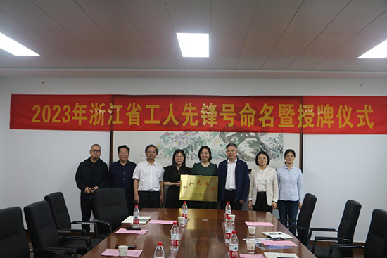 在熱烈的掌聲中,聞國平為智能技術(shù)學(xué)院頒發(fā)浙江省工人先鋒號的獎牌。