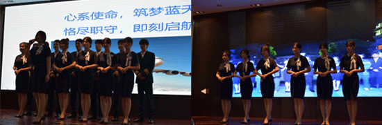 2208班帶來的作品《匠心筑夢,未來可飛》講述了要想成為一名氣質(zhì)出眾、禮儀標準、素質(zhì)過硬的航空乘務員,不僅需要具備一定的文化素養(yǎng),還應擁有良好的職業(yè)素養(yǎng),這些都離不開日常的艱苦訓練。