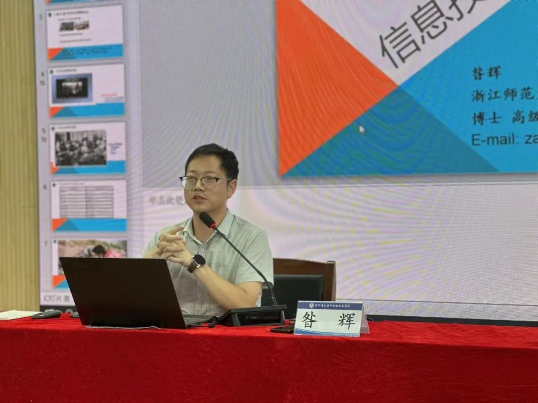 下午,浙江師范大學(xué)婺州外國語學(xué)校的副校長昝輝教授從“教育教學(xué)要創(chuàng)新的時代需求”“信息技術(shù)創(chuàng)新教學(xué)的潛能”“信息技術(shù)創(chuàng)新教學(xué)的方式”和“信息技術(shù)創(chuàng)新教學(xué)模式”四個維度,為青年教師們帶來一場數(shù)字革命的思想洗禮。“互聯(lián)網(wǎng)+教育”的趨勢不可逆轉(zhuǎn)。“信息賦能教學(xué),技術(shù)創(chuàng)新課堂”,隨著科技進步、教育教學(xué)改革的不斷深入,學(xué)習(xí)方式的轉(zhuǎn)變呼喚教師理念多元化、教學(xué)資源多樣化、教學(xué)方式個性化。