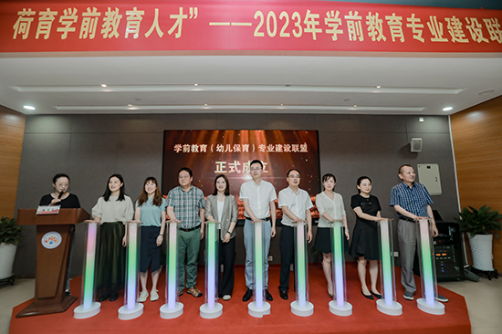 隨著5秒的倒計(jì)時(shí),領(lǐng)導(dǎo)共同按下啟動(dòng)臺(tái),2023年學(xué)前教育(幼兒保育)專業(yè)建設(shè)聯(lián)盟正式啟動(dòng)!