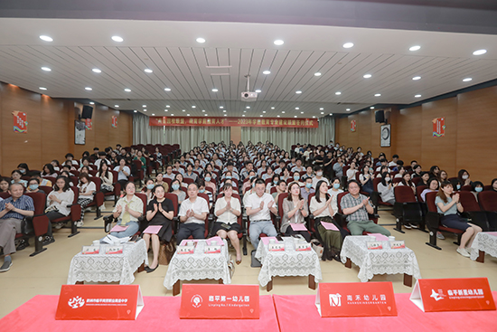 致辭結(jié)束,全體人員觀看臨平商貿(mào)職高幼兒保育專業(yè)宣傳片《美好時(shí)光,與你“童”行》的首映。