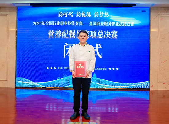 2022年12月,團隊邵澤東老師獲得全國營養配餐員賽項冠軍,全國技術能手