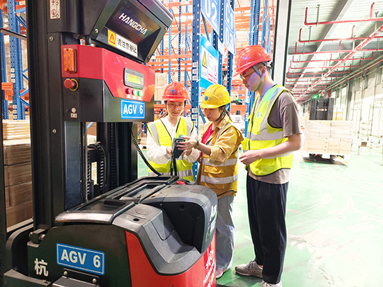 教學創新團隊成員北侖職高賀維英(左一)在寧波龍星物流有限公司脫產實踐
