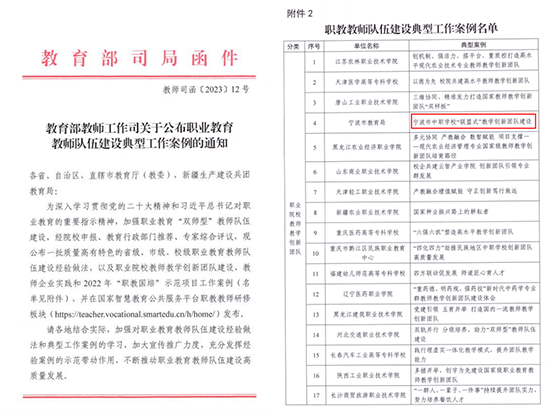 近日,寧波職業教育傳來捷報,寧波市中職學校“聯盟式”教學創新團隊建設獲評教育部職業教育教師隊伍建設典型案例。