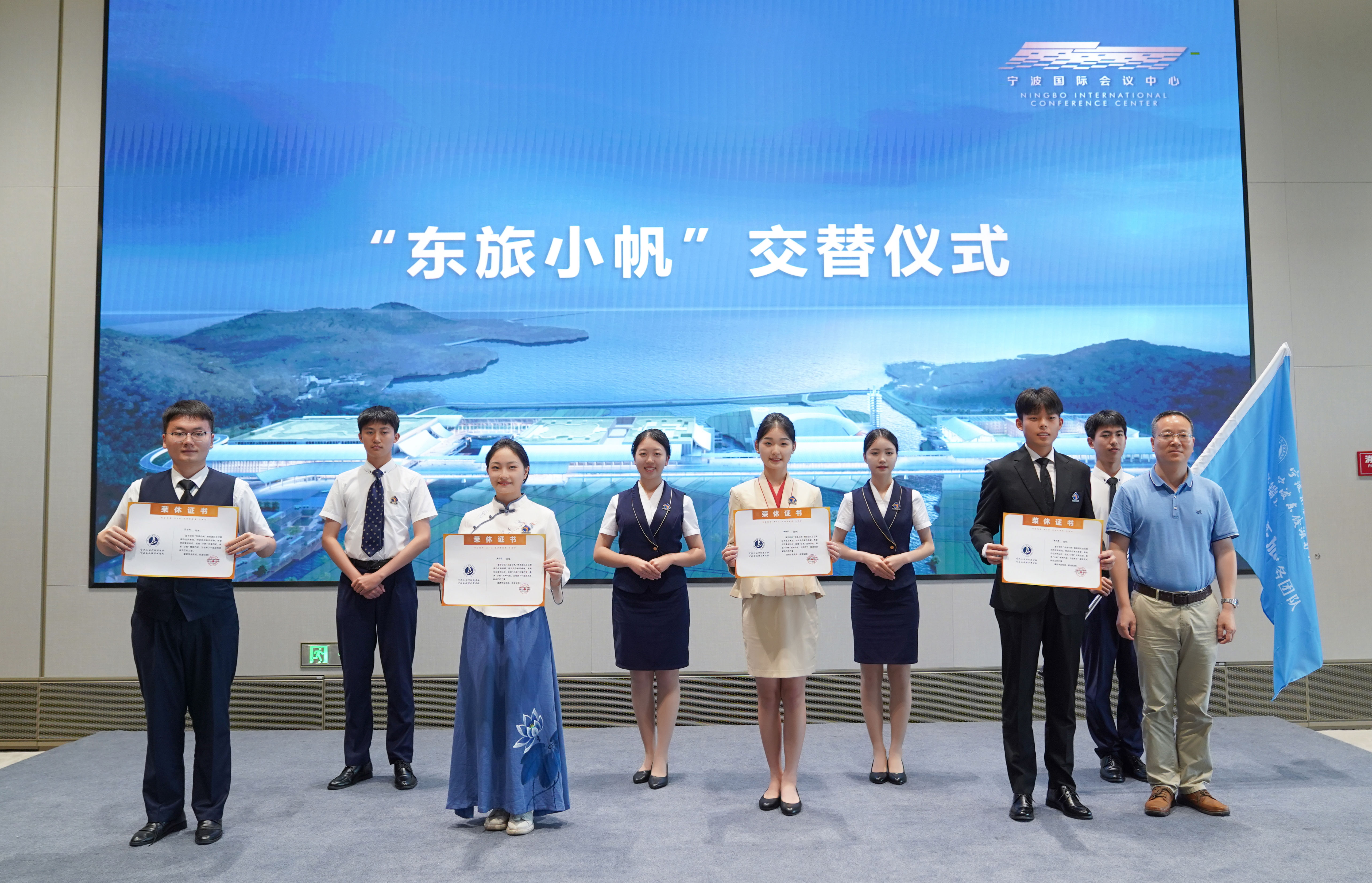 儀式現(xiàn)場(chǎng),寧波東錢湖旅游學(xué)校就職于國(guó)際會(huì)議中心的三位優(yōu)秀畢業(yè)生從校園時(shí)代、工作經(jīng)歷出發(fā),分享了個(gè)人成長(zhǎng)感悟。“東旅小帆”禮儀團(tuán)隊(duì)進(jìn)行新老成員交接儀式,大家還向與會(huì)者展示精湛的折花、點(diǎn)茶等技能技藝和頗具個(gè)人特色的才藝表演,贏得與會(huì)者的嘖嘖稱贊。(陳引芳 吳彥/文 胡佳/圖)