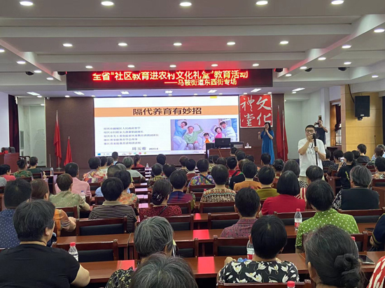 6月21日14時,紹興市柯橋區馬鞍街道東西街居文化禮堂聚集了150余位老人,他們在聽浙江省家庭教育講師、紹興一中初中部副校長周玉蓉的家庭教育講座——《隔代養育有妙招》,周校長的講座讓這些爺爺奶奶、外公外婆們聽得津津有味。