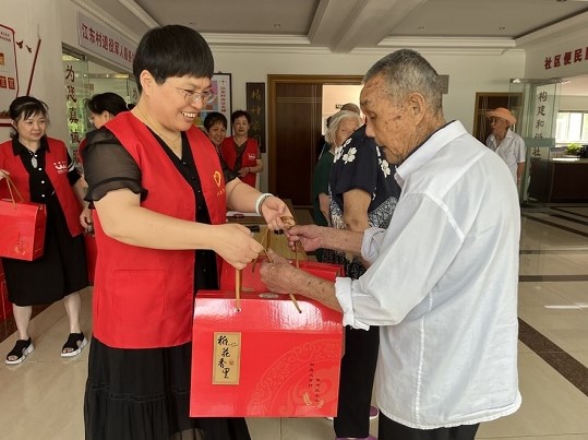 慰問(wèn)現(xiàn)場(chǎng),工作人員陪老人們“拉家常”,關(guān)心他們的生活起居及身體健康情況。老人們高興地接過(guò)志愿者們送上的粽子禮盒說(shuō):“馬上就到端午節(jié)了,大家送粽子給我們,抽時(shí)間看望我們,感謝大家一直惦記著我們這些老年人。”粽子不但是老人們餐桌上的食物,更是社會(huì)給他們送去的暖心關(guān)懷。此次端午敬老活動(dòng),弘揚(yáng)的是中華傳統(tǒng)文化精髓,表達(dá)的是社會(huì)對(duì)老人的牽掛,傳播的是滿(mǎn)滿(mǎn)正能量。