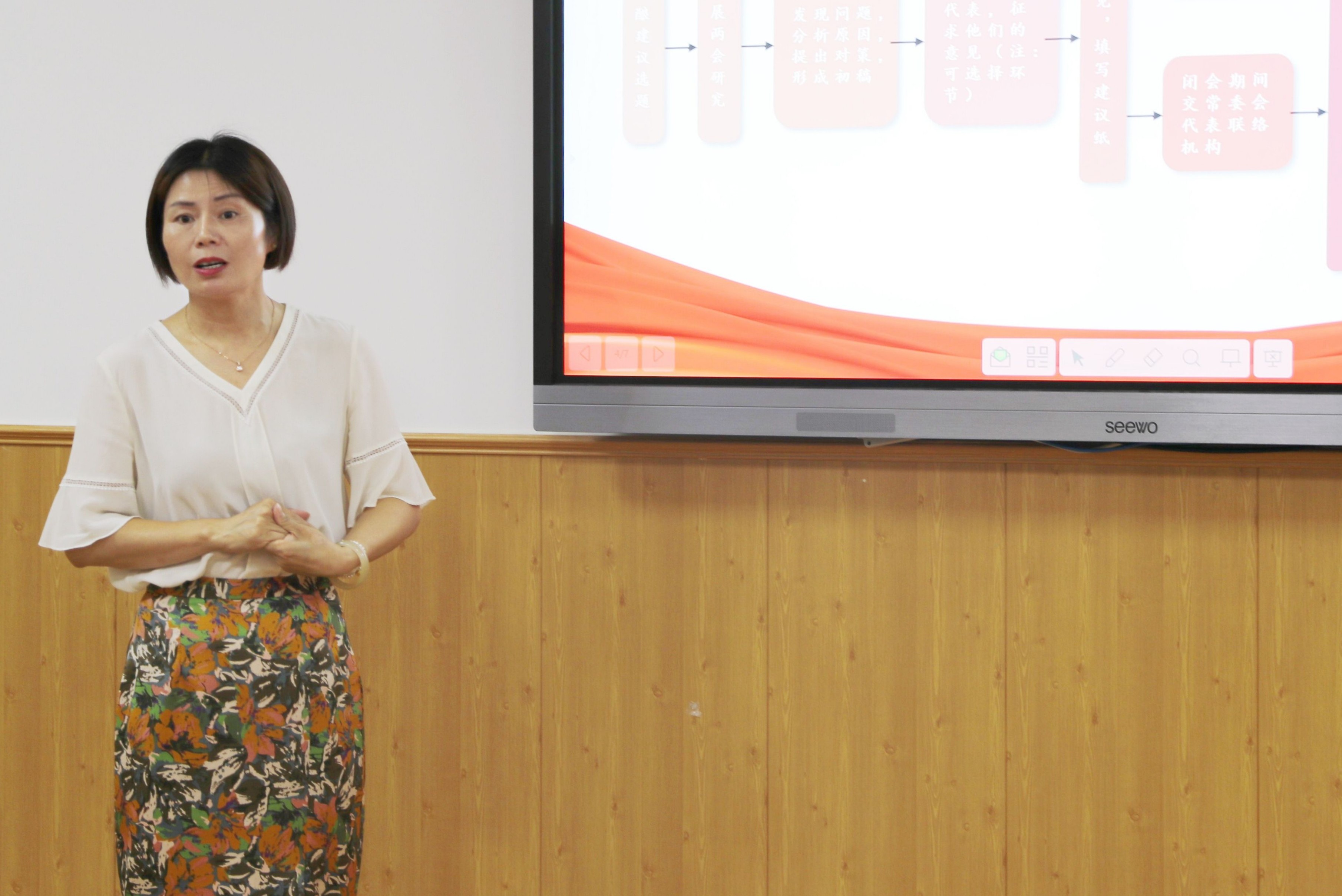 隨后,錢琴梅以《提好建議 履職擔(dān)當(dāng)》為題,重點(diǎn)從代表建議是什么、代表建議怎么寫兩大方面講述自己對于人大代表建議的理解與感悟。她以案為例,通過個人作為人大代表提出的《基于“七型城市”建設(shè)背景下智能建造公共實(shí)訓(xùn)中心建設(shè)的建議》體例講解,從人大代表建議的提出與處理流程、建議的文本結(jié)構(gòu)等方面,深度解讀了人大代表建議撰寫的格式、思路、方法,幫助同學(xué)們掌握人大建議中建議標(biāo)題、問題指出、原因分析、對策提出等維度的思維邏輯。