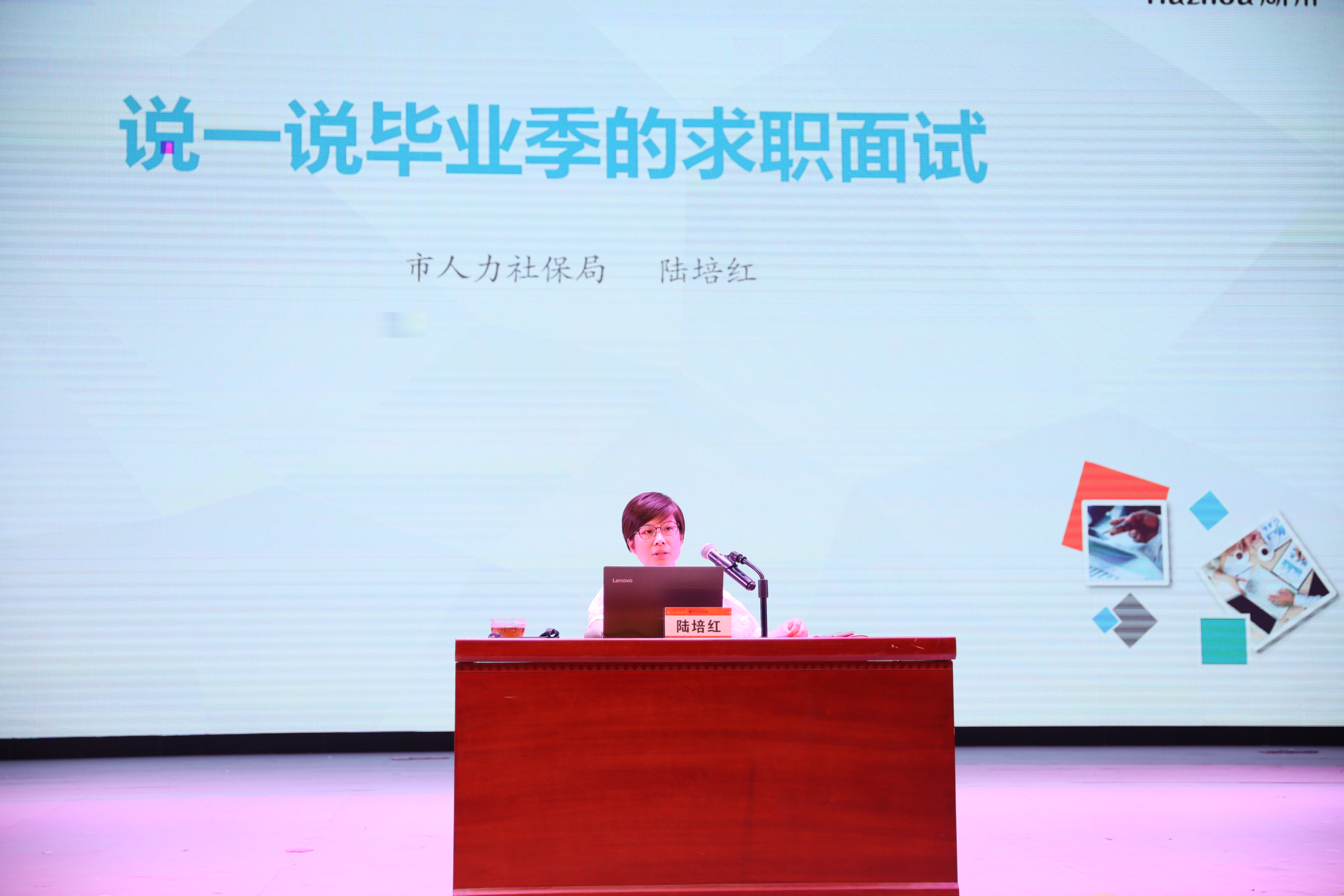 陸培紅在會上作題為“說一說畢業季的求職面試”的就業指導講座,從面試的基本概念、面試的種類、面試的特點、面試測評的主要內容、面試的應對方法和面試的禮儀六個方面展開,為大家詳細講解面試的注意要點。會后,很多同學表示“戳到了我的知識盲點”“很實用”“面試容易犯的錯誤那塊印象最深”……