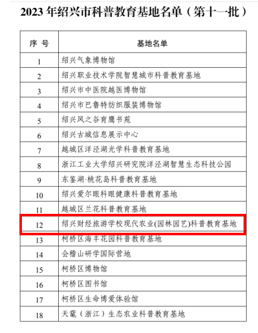 近日,紹興市市委宣傳部、市科協、市教育局、市科技局等部門聯合發布《關于認定2023年紹興市科普教育基地(第十一批)的通知》(紹市科協〔2023〕25號),紹興財經旅游學校“現代農業(園林園藝)”科普教育基地成功入選紹興市級科普教育基地。