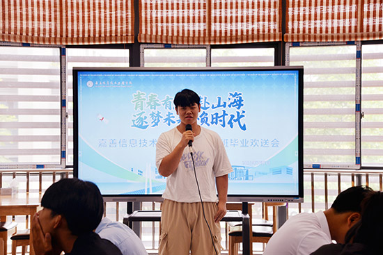 班長段達強作為學生代表向學校領導和老師們表達了最誠摯的感謝,對同窗三年的同學們深情告白,共勉未來。他表示,今后一定會以更加飽滿的熱情,勇敢地面對各種挑戰,將紅船精神牢記心中,用行動書寫美好未來。