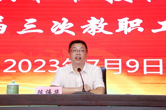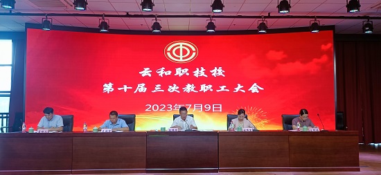 為充分調動廣大教職工參與學校建設的積極性,凝聚全校教職工智慧和力量,充分發揮民主管理、民主監督作用,7月9日上午,云和縣中等職業技術學校召開第十屆三次教職工大會。校黨總支書記、校長陳偉華,副書記林偉琴,副校長吳根榮、副校長王柳娟,工會主席藍根兒出席會議,大會由黨總支副書記林偉琴主持。