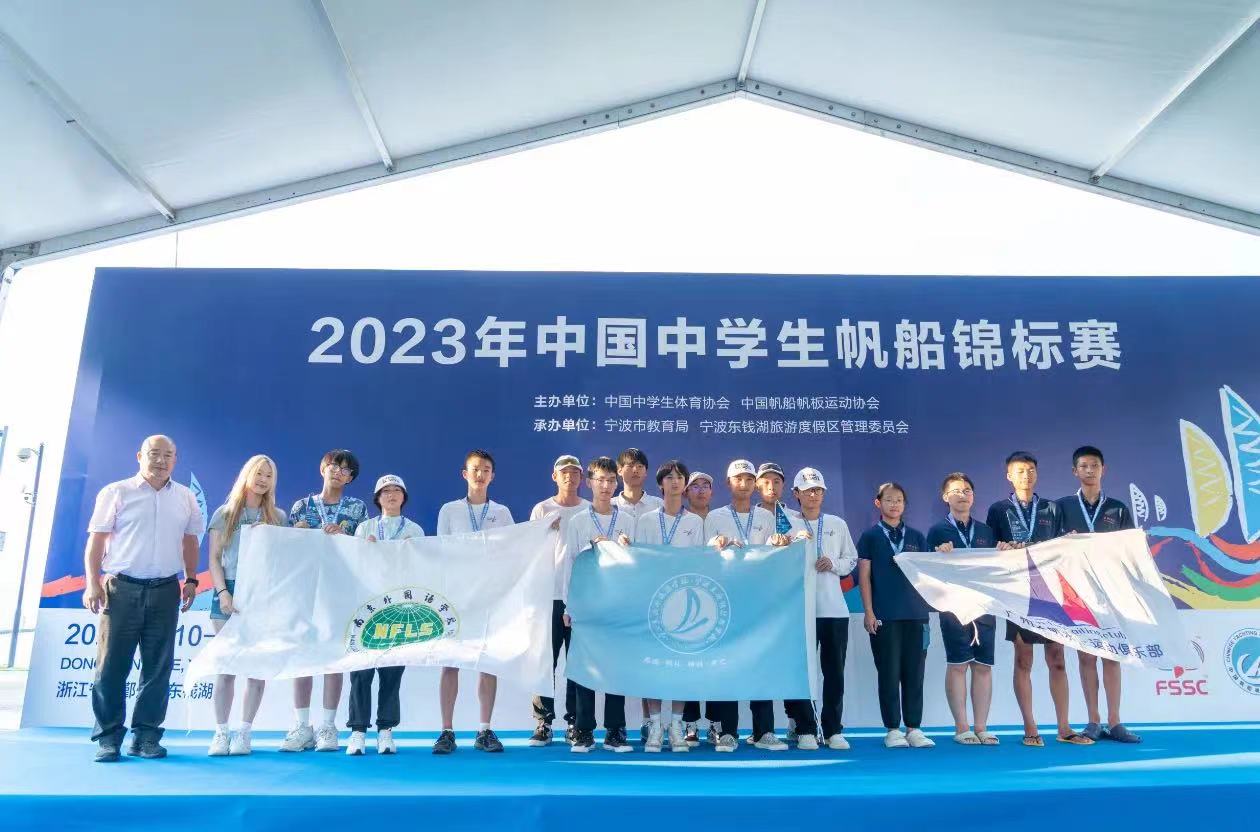 7月11日是第19個中國航海日,當天,2023年中國中學生帆船錦標賽在東錢湖畔收帆,寧波東錢湖旅游學校派出揚帆起航隊和東旅揚帆隊兩支隊伍參賽,分別摘得高中組FE23R龍骨船校際團體賽第一名和第四名。