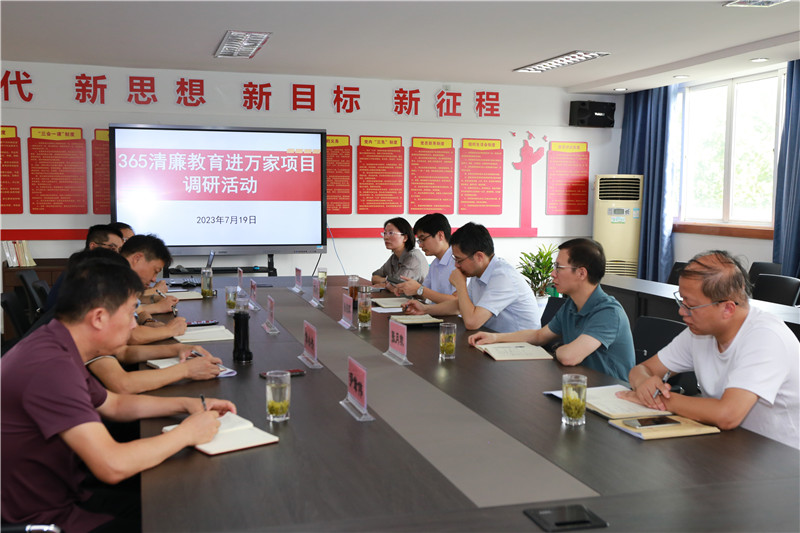 7月19日上午,湖州市紀委常務副書記、市監委副主任徐昌軍,市紀委市監委宣傳部部長張月歡一行來到長興開大教師進修學院調研“365清廉教育進萬家”項目工作。長興縣委常委、縣紀委書記、縣監委主任肖體紅,縣監委委員、縣紀委縣監委黨風政風監督室主任楊霞,縣教育局黨委副書記雷曉財等陪同調研,院長章小杰作項目實施情況匯報。